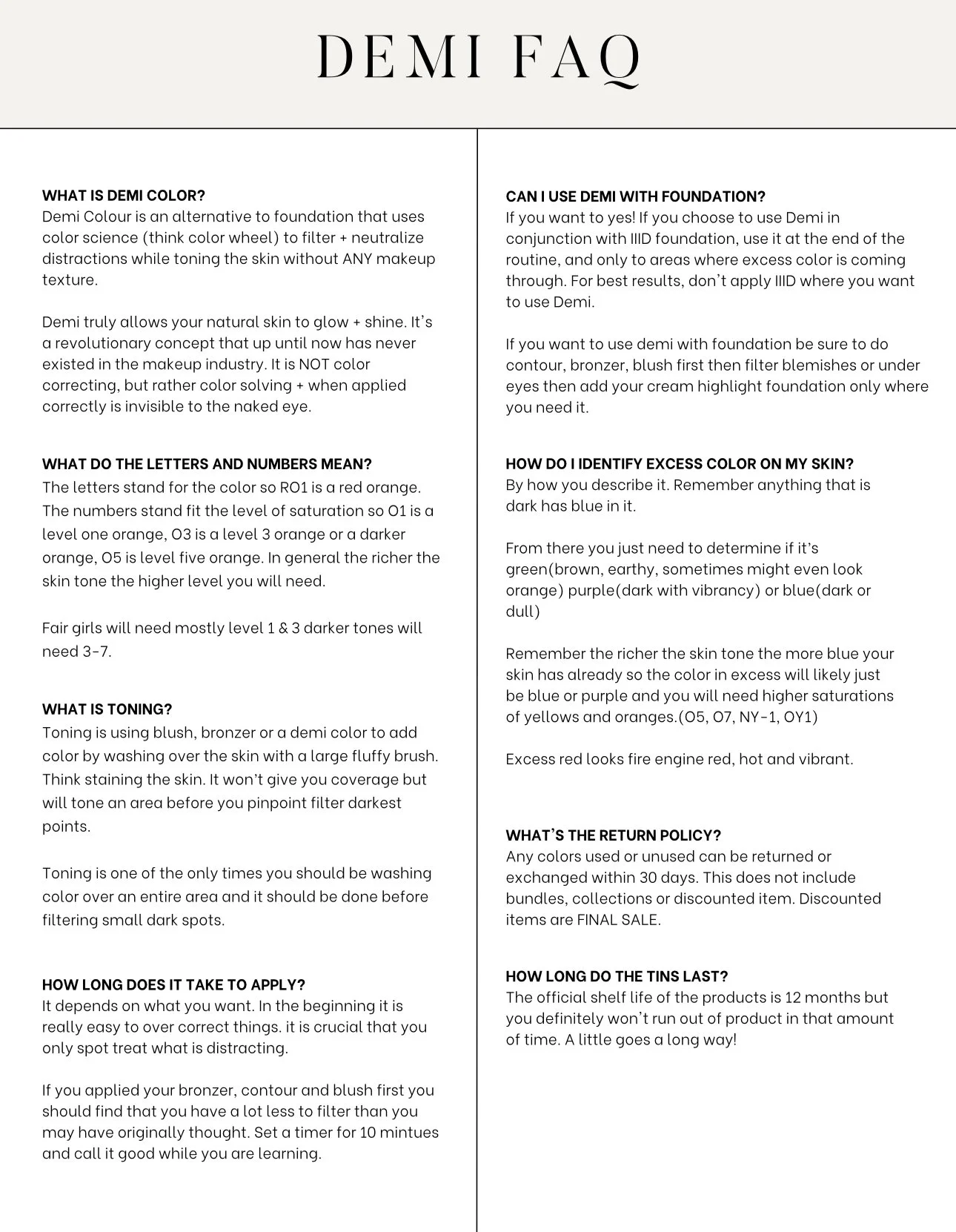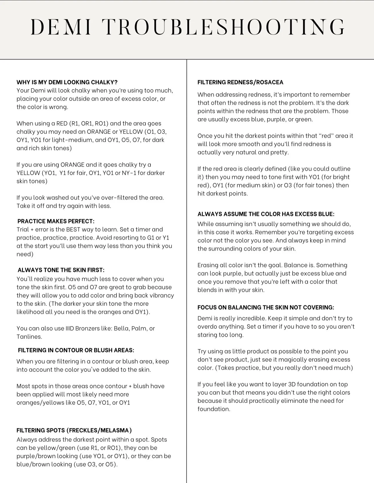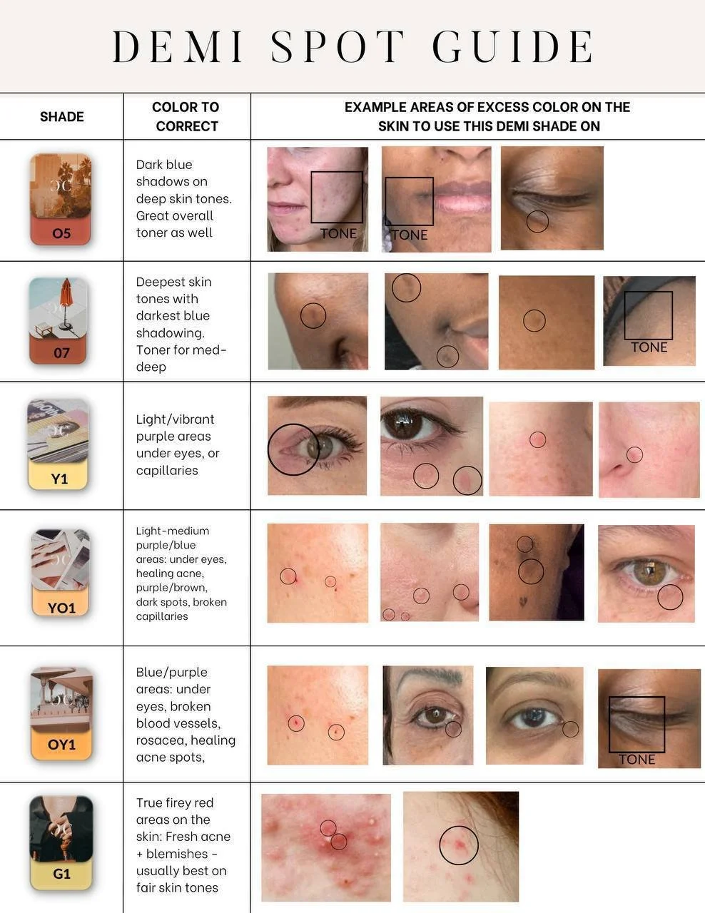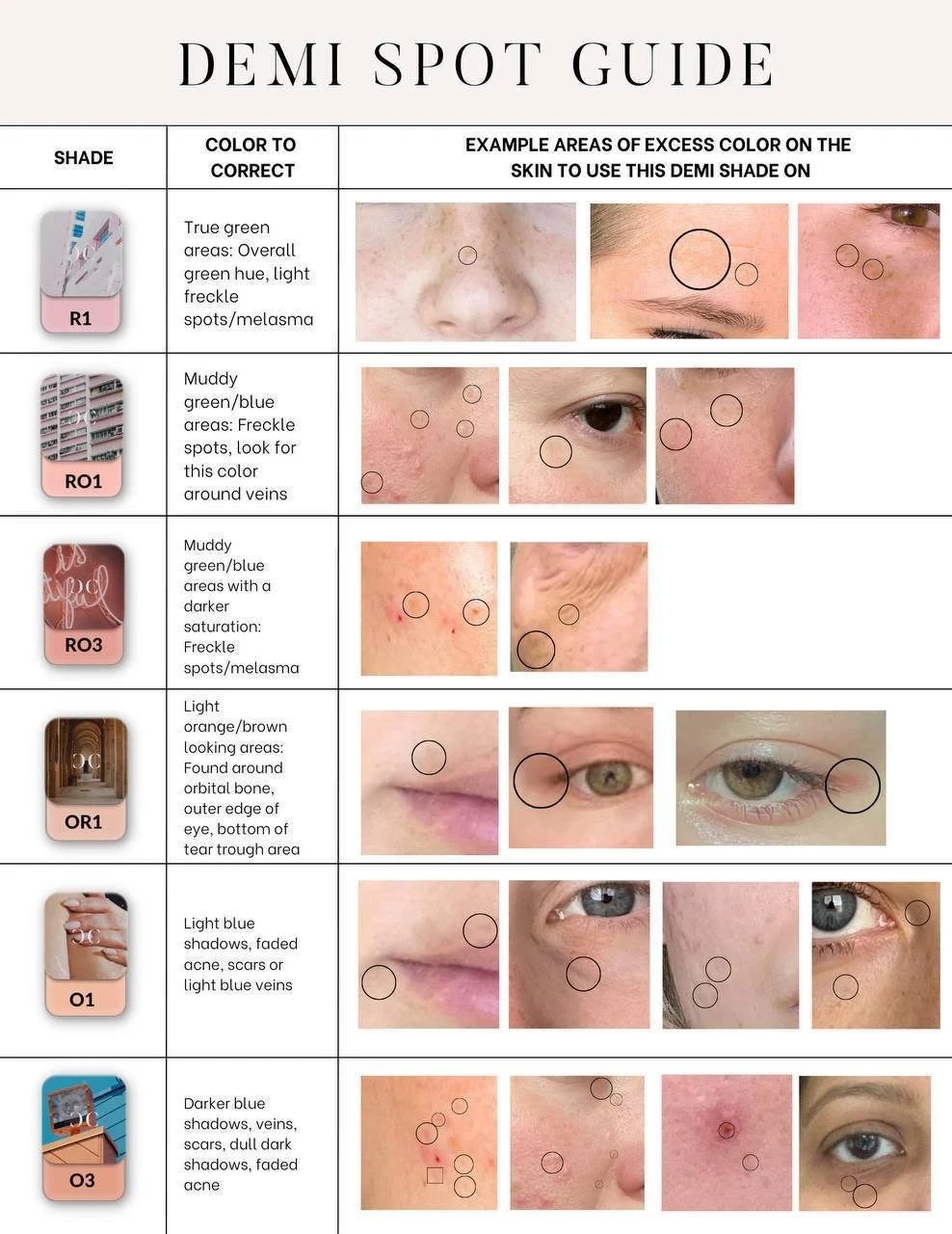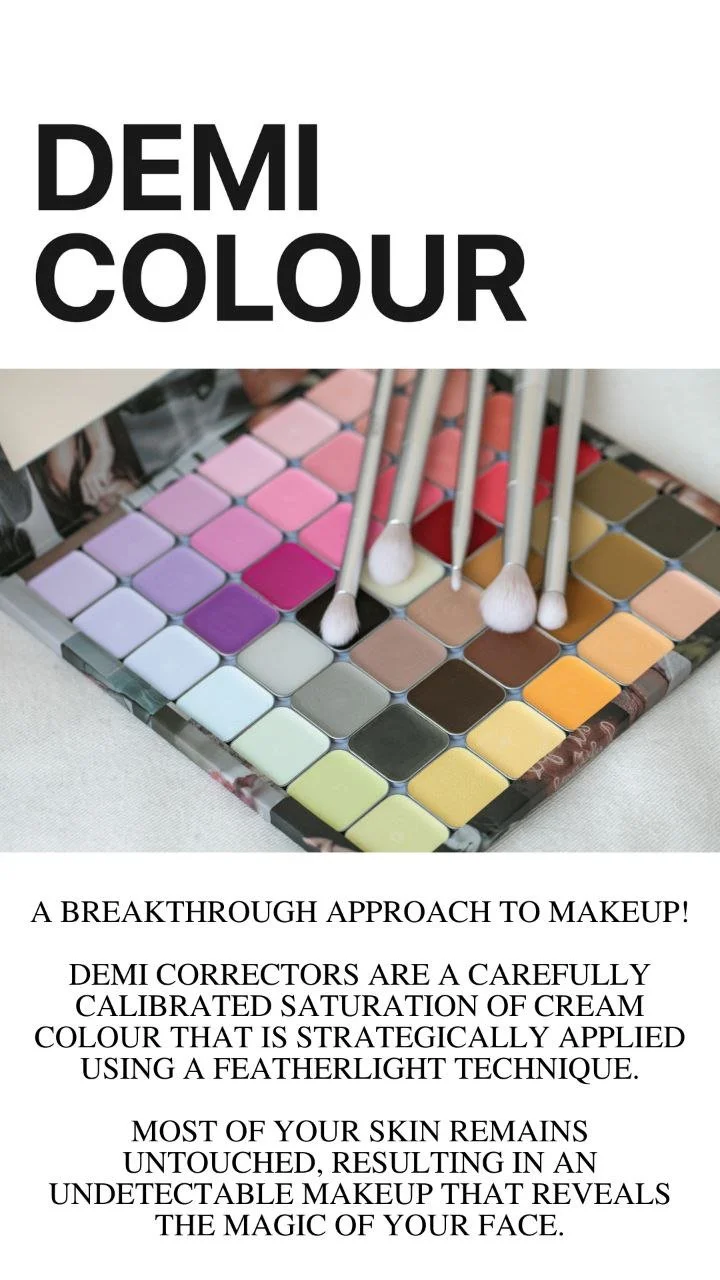 Demi Correctors are based off color science so you will be using complimentary colors AKA colors opposite on the color wheel to spot treat tiny dark points on the face.